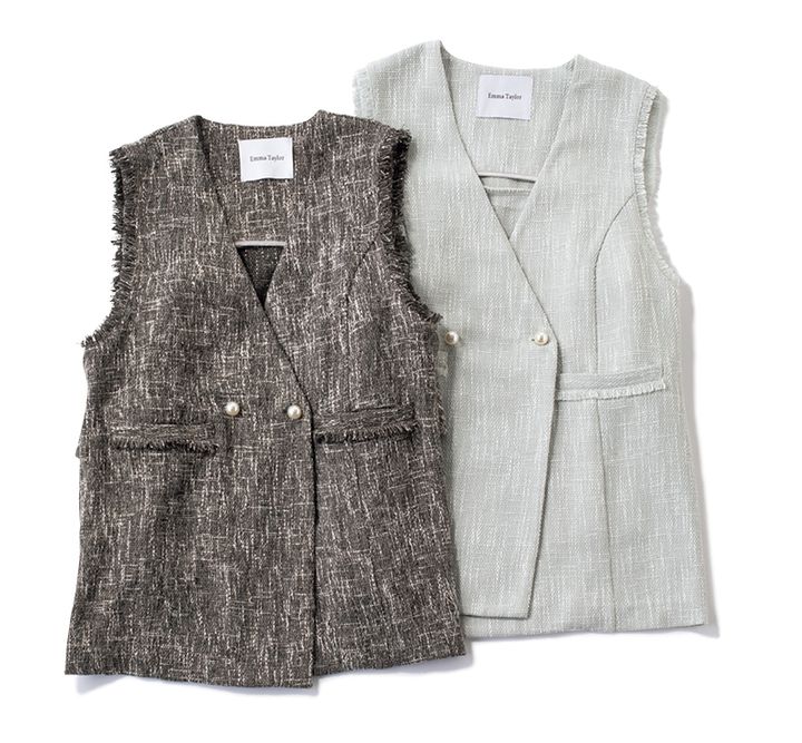 秋に大好評だったツイードジレに 新しくライトグレーが仲間入り!