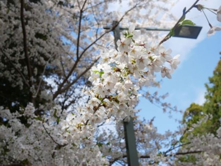5月は新緑が綺麗です。桜もちょうど満開でした。