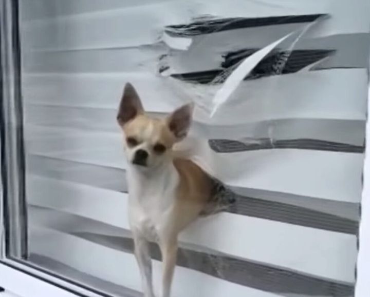 3. 外を見たかった犬さん。カーテンに頑張った痕跡が