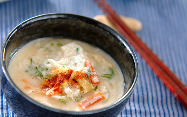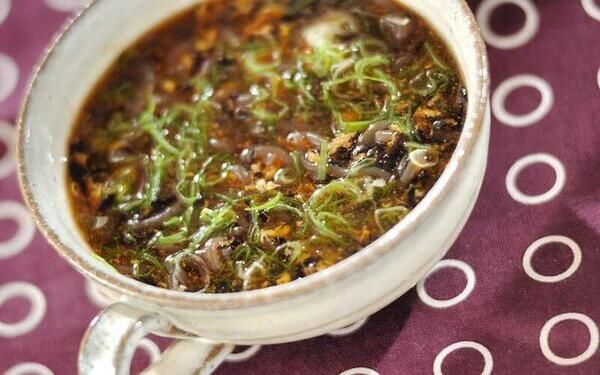 糸コンニャクはカロリーが低いことで知られていますが、実はカルシウムが豊富な食材。糸コンニャク3/4袋で、牛乳1/2杯と同量のカルシウムが摂取できると言われているんですよ。食物繊維が豊富な芽ヒジキと組み合わせたスープにすれば、栄養満点。水溶き片栗粉でとろみをつけるため、体を温めたいときにも最適です。