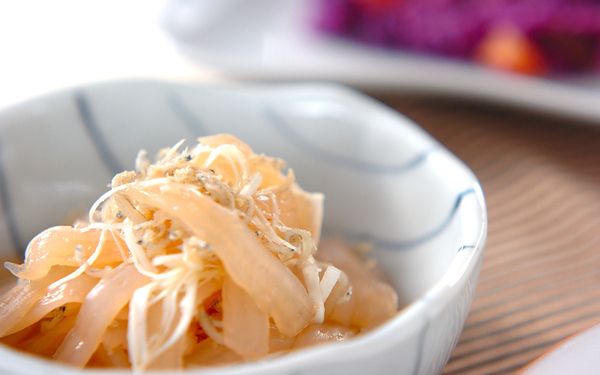 糸コンニャクやチリメンジャコなどを使った酢の物は、サラダ感覚で食べられるのが魅力です。糸コンニャクは乾煎りしてしっかり水分を飛ばし、おろしショウガ入りの甘酢と合わせます。糸コンニャクだけだと物足りない、という方もチリメンジャコの旨みで満足できますよ。