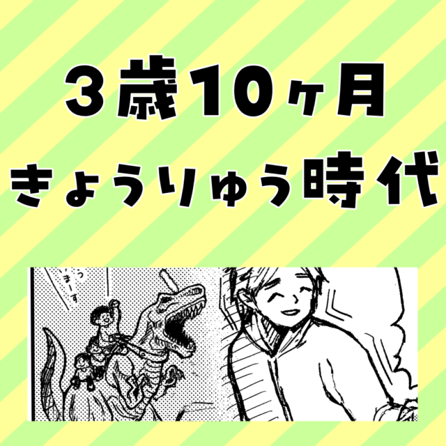 昨日や明日という時間感覚や数の大小がわかってきた息子。30年という月日は膨大な年月だったみたいです。まさかの恐竜登場に笑ってしまいました。