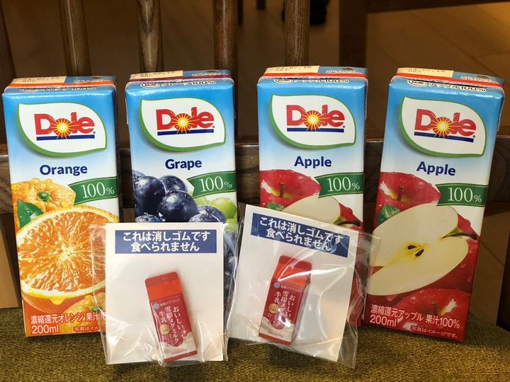 お土産には、ジュースのほか同じく非売品の牛乳型消しゴムがもらえます。
