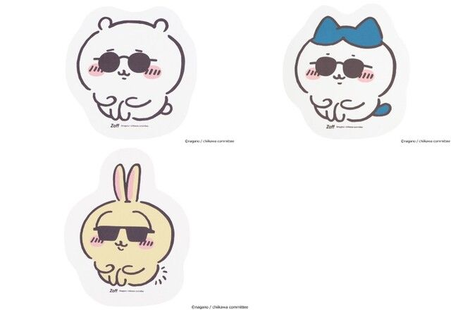 ここでしか手に入らないZoffオリジナルのメガネやサングラスをかけた『ちいかわ』たちの、メガネグッズも登場。