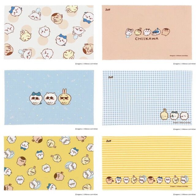Zoffでしか見られない、メガネやサングラスをかけて夏を満喫する『ちいかわ』たちがかわいい。横長の大きめサイズで使いやすいメガネ拭きです。