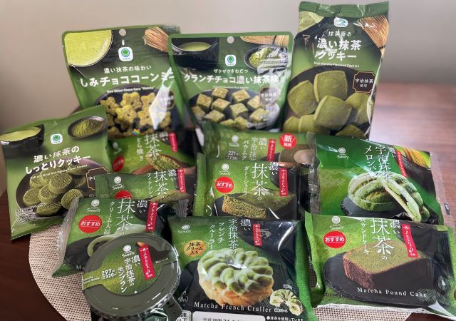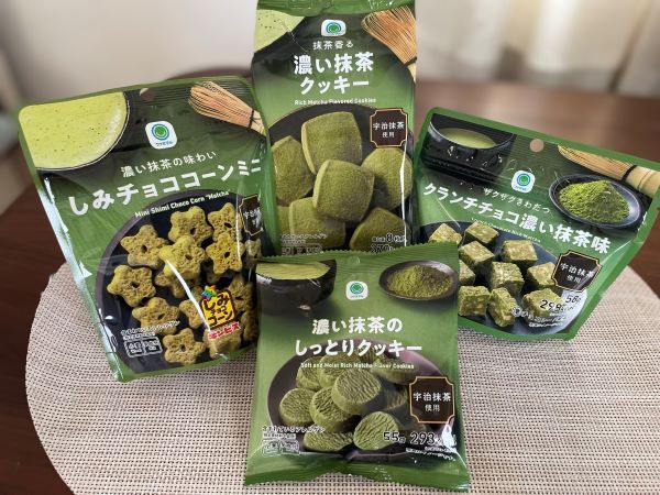 オフィスや自宅に常備しておくなら、「抹茶香る濃い抹茶クッキー」(268円)、「濃い抹茶の味わいしみチョココーンミニ」(168円)、「ザクザクきわだつクランチチョコ濃い抹茶味」(178円)、「濃い抹茶のしっとりクッキー」(178円)もおすすめです。