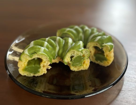 「濃い宇治抹茶のフレンチクルーラー」も今年新登場したスイーツ。ふわっと軽い食感のフレンチクルーラーに抹茶ホイップ、抹茶クリームをサンドして、抹茶チョコでコーティングされています。薫り高く濃厚な抹茶クリームとチョコレートがたまりません! ペロリと食べてしまうおいしさでした。