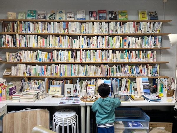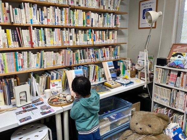 実は、こちらの建物は、もともと建築設計事務所だったそう!漫画や歴史物もチラホラ。蔵書数は約5,000冊。絵本や児童書も約1,100冊。左側奥には、沢山の児童書、絵本、ジャンルを問わず、ざっくばらんに、子連れでも楽しめる読書スペースとなっていました。