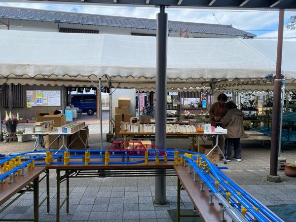 後日、とある日の土曜日に古本交換会に読み終えた本を持って早速行ってみました。タイミングよく町家「みこパン」さんのプラレールイベントと重なり息子も大喜び!!!