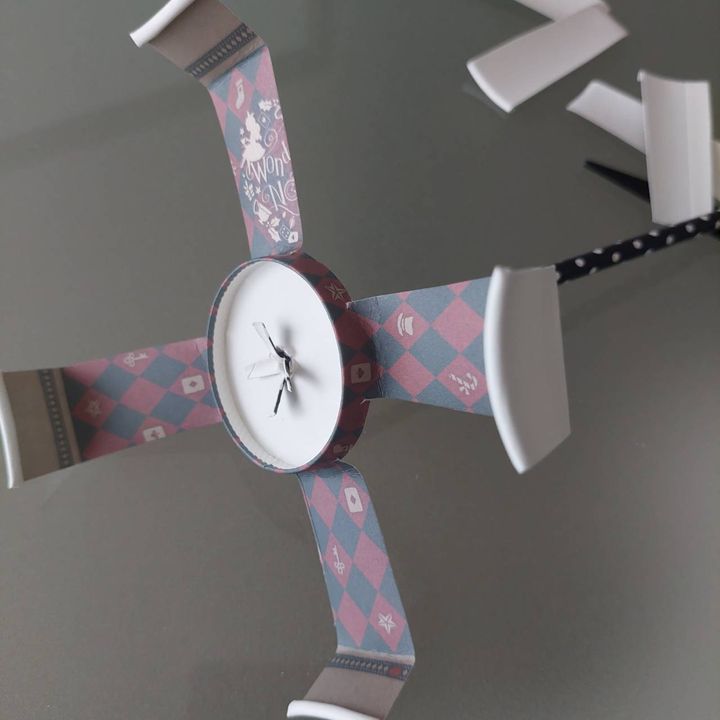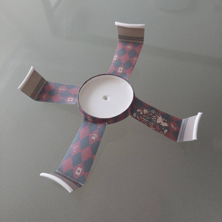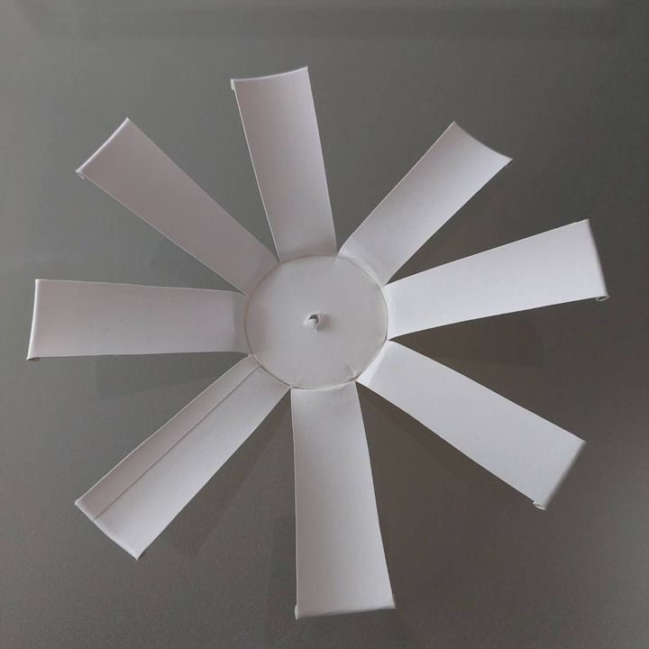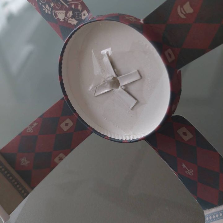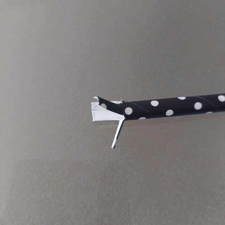 ストローを4等分になるよう少し切り込みを入れ、先ほどの紙コップにテープで張り付けます。