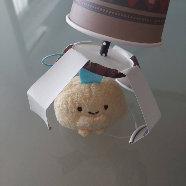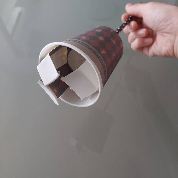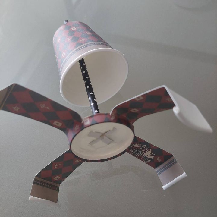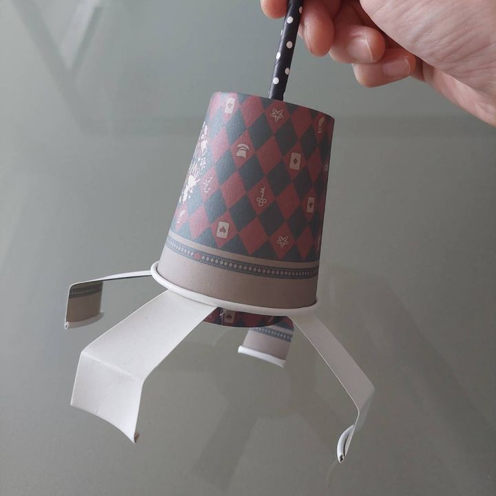 もう一つの紙コップもストローに通して出来上がりです。