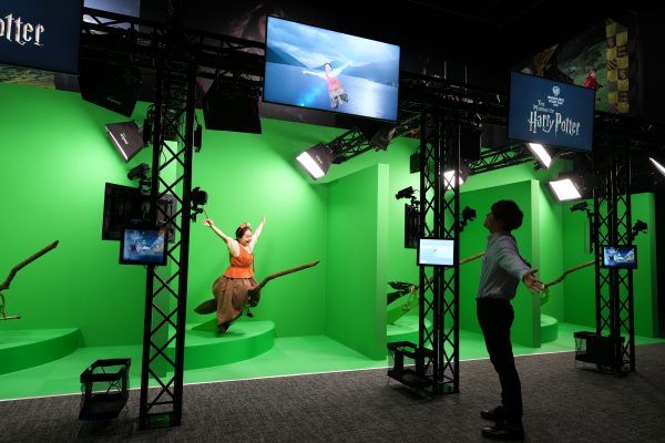 施設では、自分が実際に映画のシーン参加できる様々なインタラクティブ体験が用意されています。例えば、映画でも実際に使われたグリーンスクリーン技術を使って、ほうきに乗れる「ほうきエクスペリエンス」、クィディッチ・スタンドの席につき、スリザリン対グリフィンドールの試合を応援できる「クィディッチ撮影エクスペリエンス」など。(ほうきエクスペリエンスのデータ持ち帰りは有料)