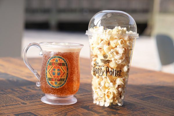 魔法ワールドで大人気の飲み物、スーベニアカップ付きのバタービールを飲むことができます。ビールと名がついていますが、アルコールは一切入っておらず、甘いので子どもも飲めるおいしさです。