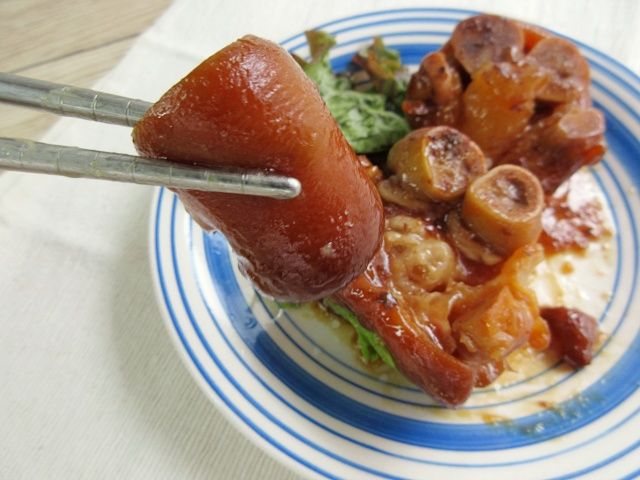 艶やかな光沢を醸し出している豚足。皮にはコラーゲンがたっぷりと含まれていそうですね。立ち込める湯気に運ばれて、豚肉の野性的な香りが漂ってきます。