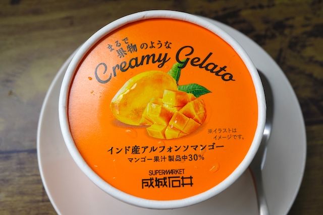 オレンジのパッケージは「まるで果物のようなCreamy Gelato インド産アルフォンソマンゴー」。