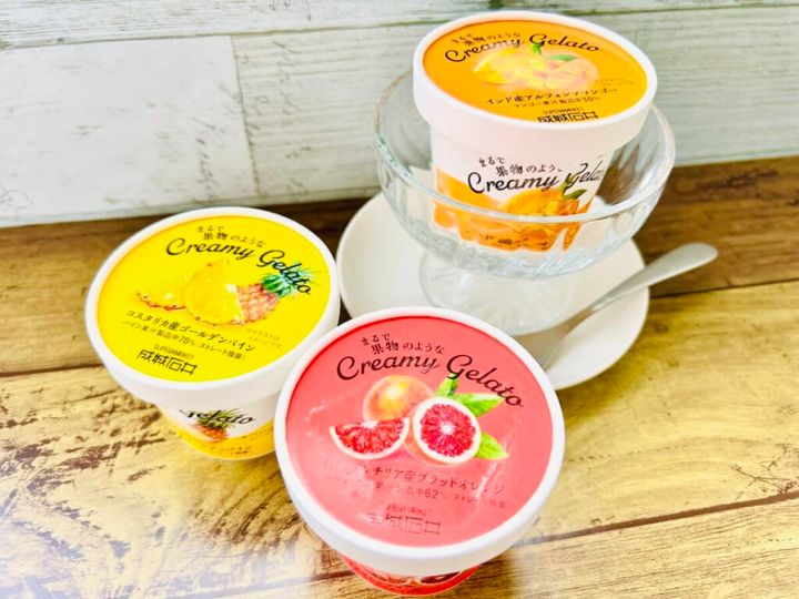 クリーミーだけどさっぱり食べられる成城石井の「まるで果物のようなCreamy Gelato」。お好みの味をぜひ見つけてみてくださいね!