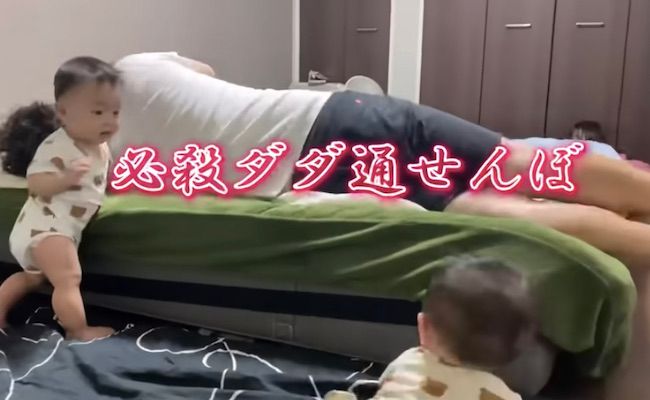185万回再生!「夜の大運動会!?」ワンオペで双子+上の子の寝かしつけ⇒工夫がすごすぎると話題!