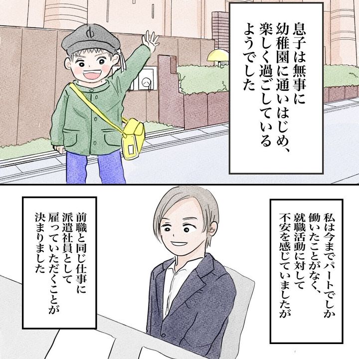 紆余曲折ありつつも、運よく預かりのある幼稚園を見つけ、息子とふたりの生活は軌道に乗ります。