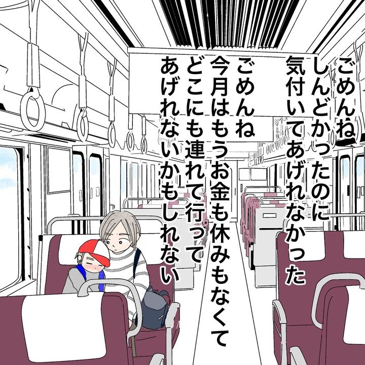 たまの休みに息子を動物園に連れて行くと息子が発熱。頼れる人もなく、息子をおぶって帰ります。楽しみにしていたのに、滅多に休暇はとれないしお金もなく、また今度連れて行ってあげるとも言えない。