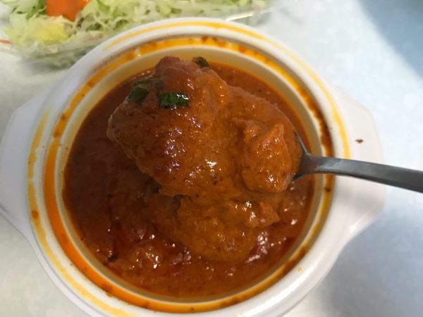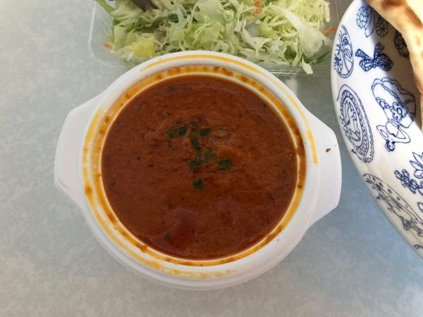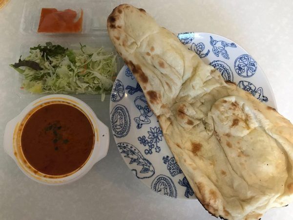 Aセットは、カレー1種類・ナン・サラダを付いていました。ナンはモチモチで程よい甘さでした。ナンは、あまりにも大きかったので長さを測ってみたら、40cmを超えていました!!