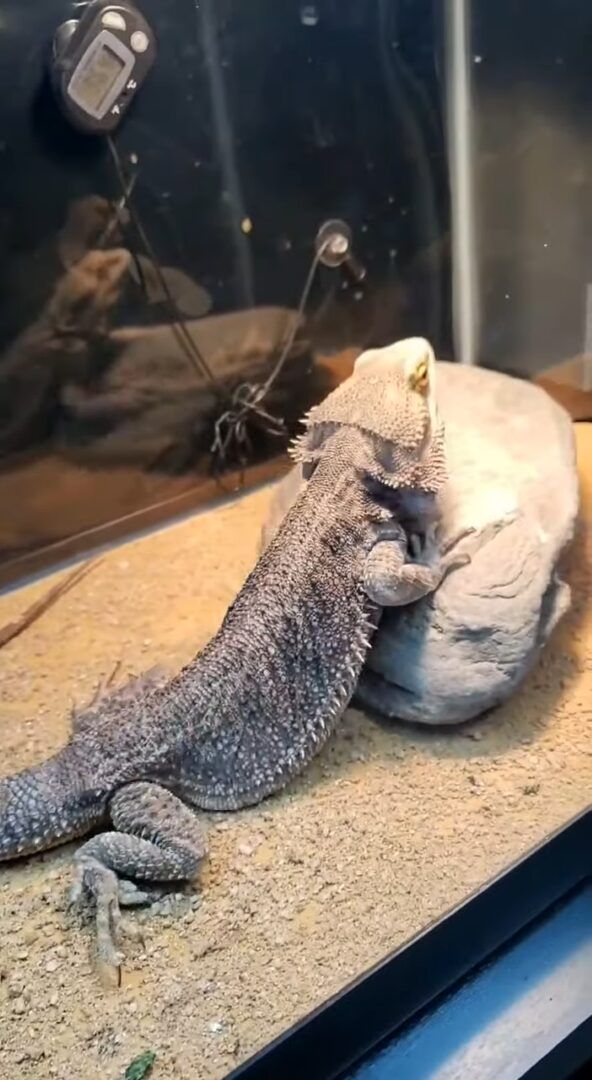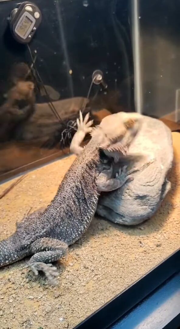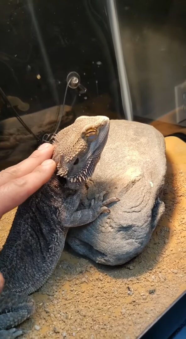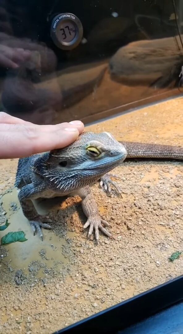 3. なでなでして~とおねだりするフトアゴヒゲトカゲ。せっかくならシチュエーションにもこだわりたい?【アメリカ・動画】