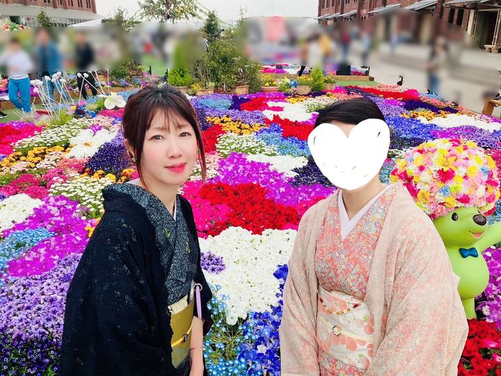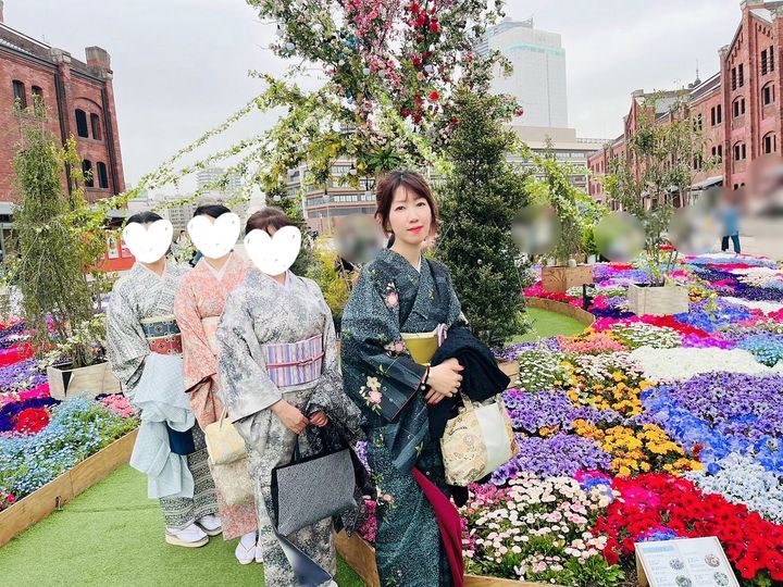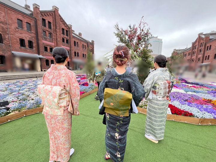 昨日は仲良し元着付け教室の仲間で、横浜赤レンガで開催中の【Flower Garden 2024】に着物で行ってきましたよ☆