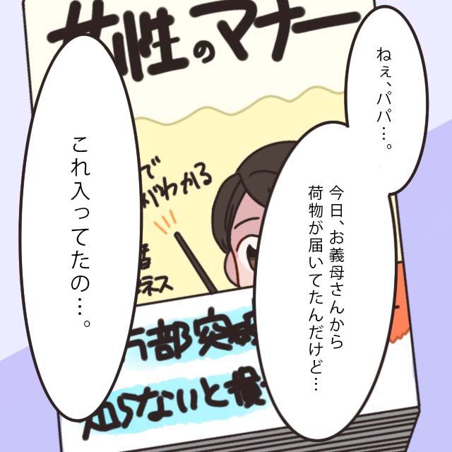 「ねぇ、パパ。今日お義母さんから荷物が届いたんだけど、これ入ってたの。」