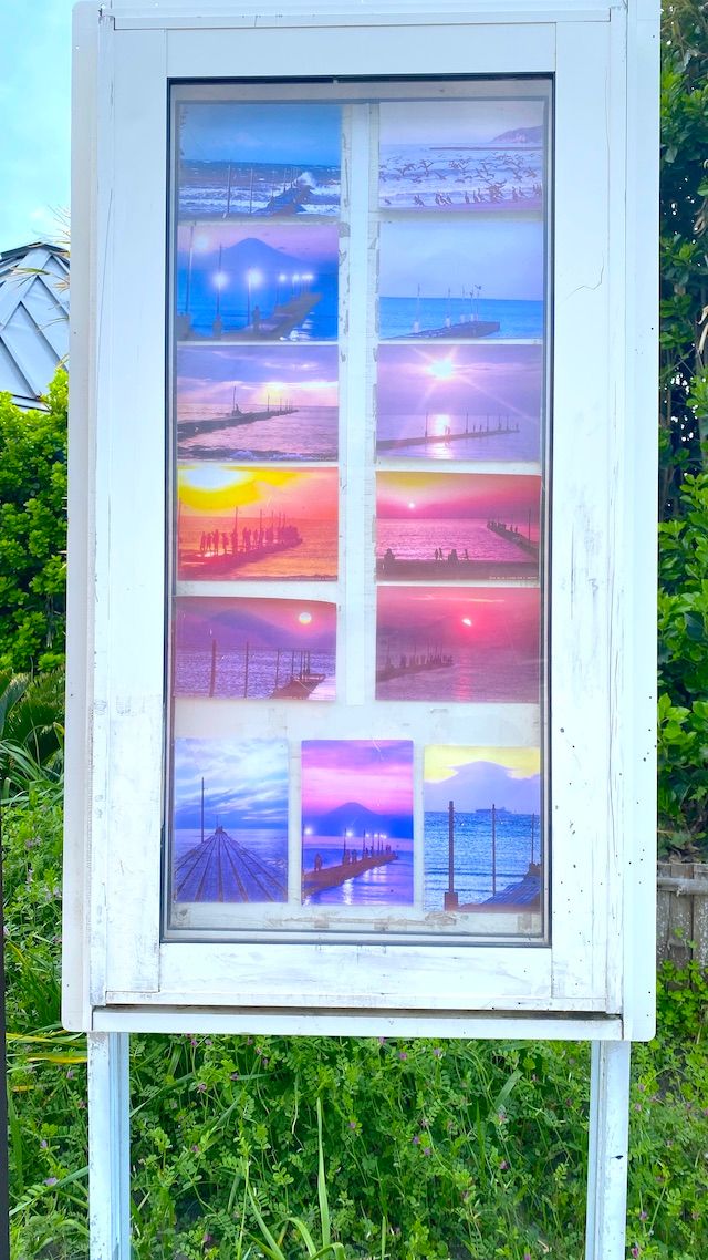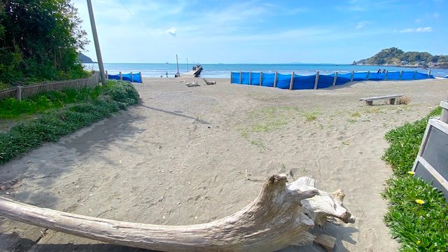 ビーチの入り口には、サンセットの美しい写真が掲示されていました。夕景に浮かぶ富士山のシルエットがあまりにも素敵で、いつか夕方に再訪したいと思ったのでした。