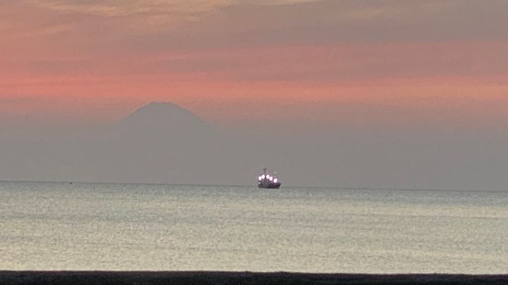 ちなみに、こちらは岡本桟橋ではないのですが、南房総ドライブの帰り道の夕焼けです。ほんのり富士山のシルエット。ちょっと得した気分になりました。