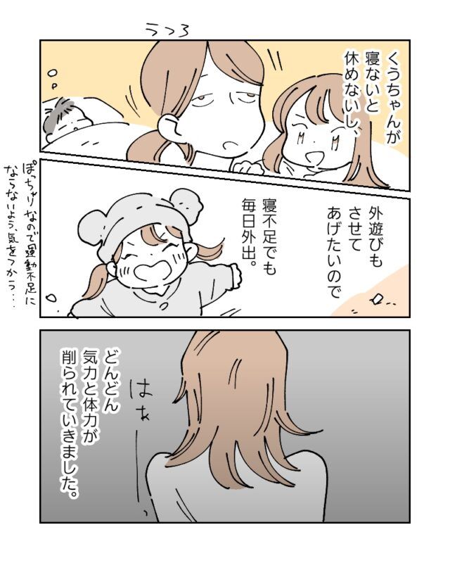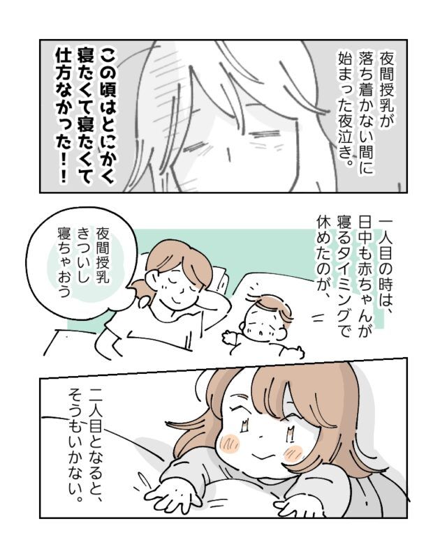 一人目のときは、日中も赤ちゃんが寝るタイミングで休めたのが、二人目となるとそうもいきません。