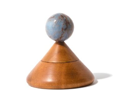 アンデス山脈の天然石とペルー原産の木材を使ったマルチボックスは、まるでオブジェのよう。球体の複雑で深みのある色は、ずっと眺めていたくなる。CONE SPECIALTHINGS BOX W14×D14×H14cm¥22,000(D.A.R/BULLPEN TEL:03・6407・0526)