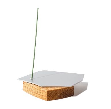 無機質なアルミニウムと、有機的で柔らかなホワイトオークのバランスが絶妙。独特のフォルムはクモの巣にインスピレーションを受けたもの。お香は別売り。φ13×H2cm¥7,920(Positiv./GENERAL FURNISHINGS & CO. TEL:03・6432・9910)