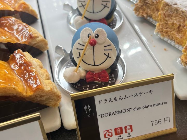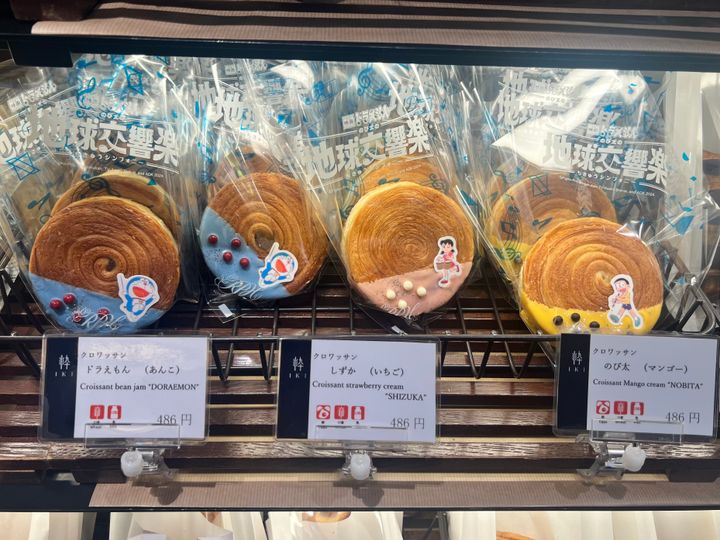 店舗「スイーツ&ベーカリー 粋」では、丸いクロワッサンや生食パン、ドラえもんモチーフのケーキも販売中。