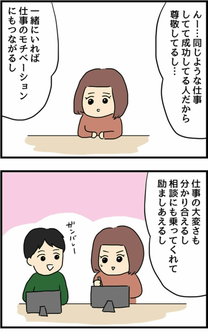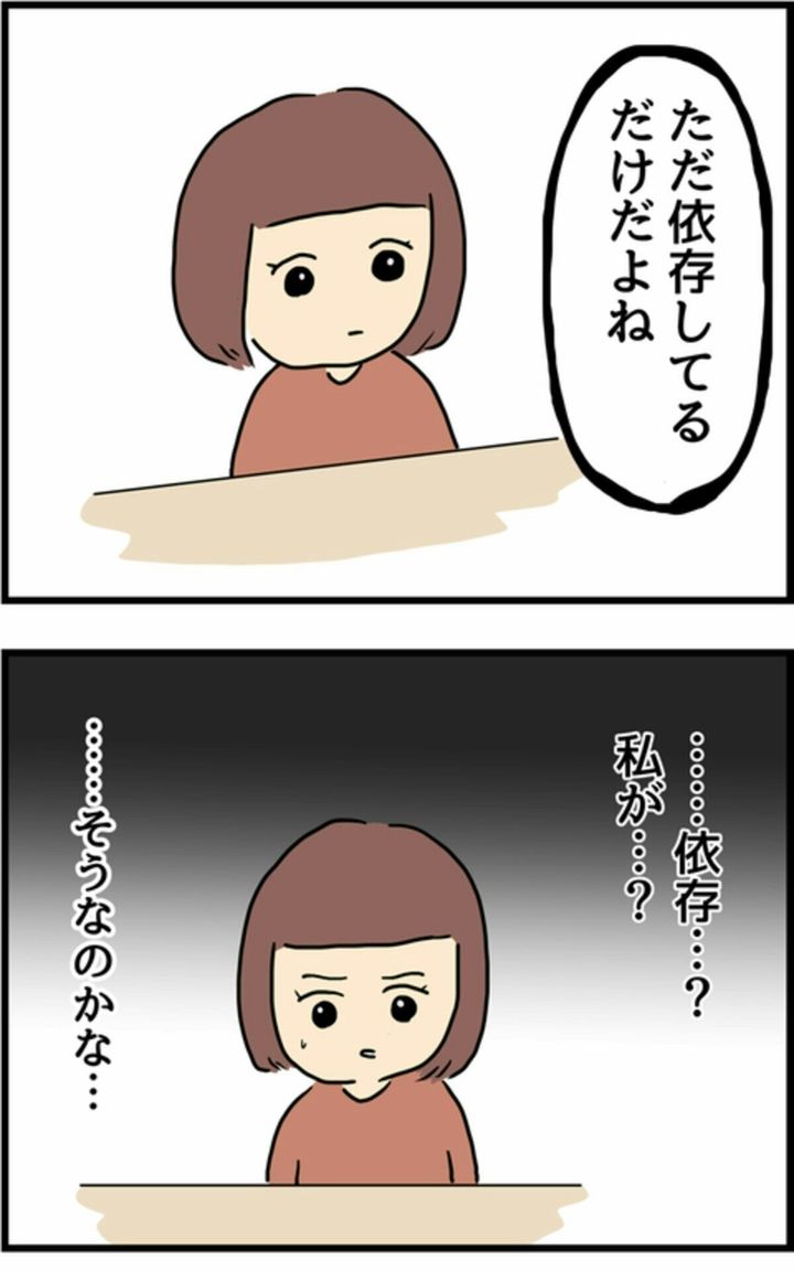 斗真とつぐみは同じ職種のため、仕事に関して尊敬できると語ったつぐみ。ですが、話を聞いた友人からは「依存しているだけ」と、するどい指摘をされます。思ってもみなかった指摘にたじろぎ、まさか自分が…と思います。