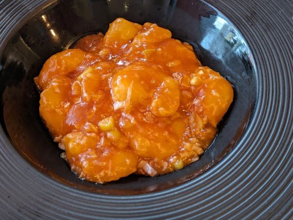 エビチリも器がお洒落で、テンションがあがります♪辛みと甘みのバランスが絶妙でプリプリの海老の旨みが生きていました。
