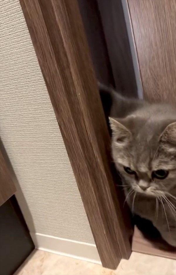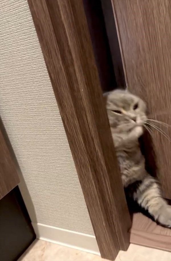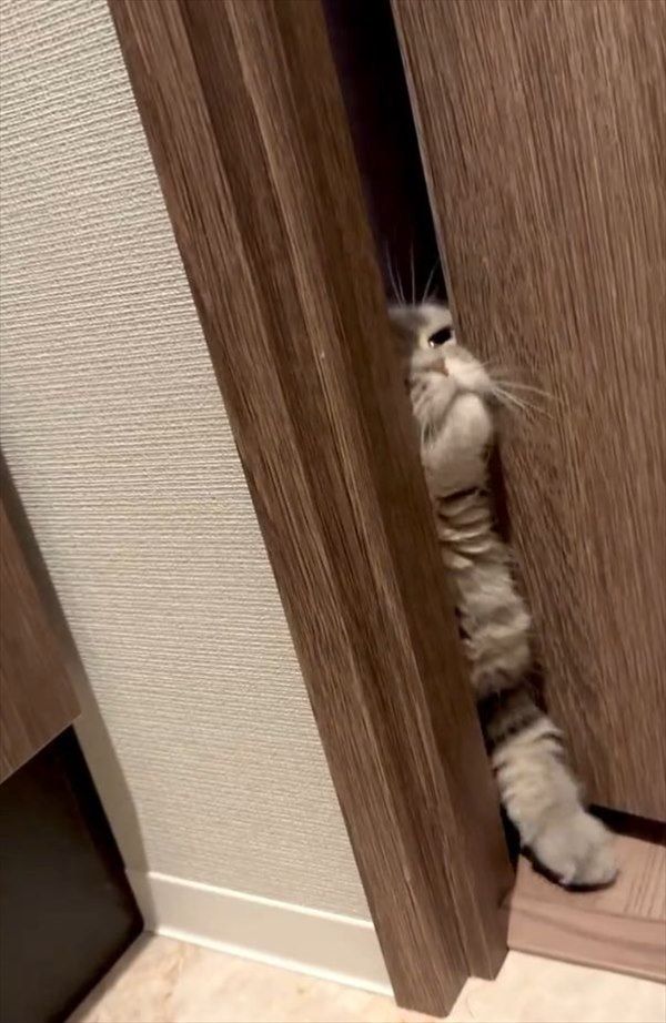 わずかに開いたドアの隙間から身をねじ込む猫。 入ってこようとしているのは・・・、なんと飼い主さんが入っているトイレ!! その様子がかわいいと反響を呼んでいます!