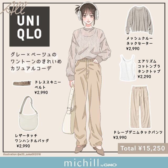 【ALL ユニクロ】グレー×ベージュのワントーンコーデ♡キレイめカジュアルコーデ