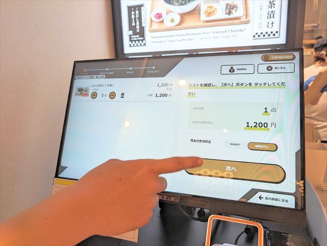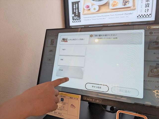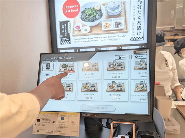 注文・会計はタッチパネル式のセルフレジで行います。食べたいメニューを選んだら……