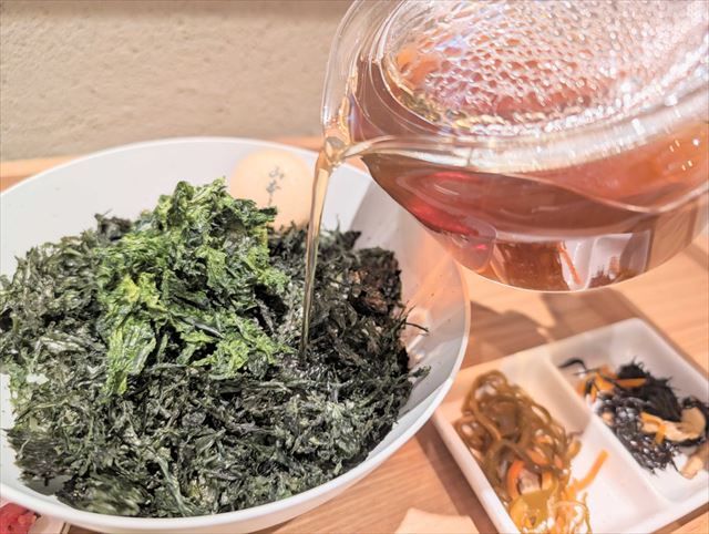 茶出汁の味も優しい! お茶の香りが強いのかな? と思ったのですがマイルドで、出汁も海苔も邪魔しない絶妙なバランスです。