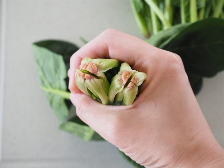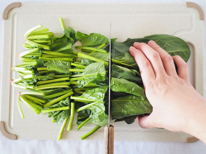 1.ほうれん草をよく洗い、ふきんやキッチンペーパーで大きい雫は吸い取っておく。