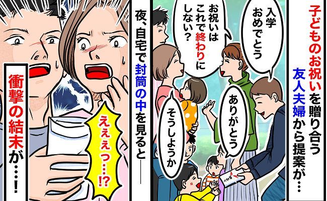 「入学祝いで最後にしよう」友人夫婦の提案を承諾した私たちが、帰宅後に封筒の中身を見て驚いた理由は