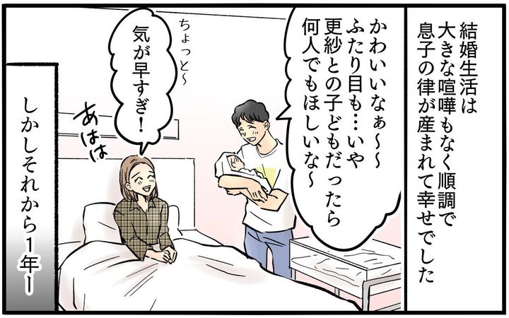 憧れだったアパレル業界で副店長を務めていた更紗でしたが、育休明けに降格させられてしまいます。それでも毎日の育児家事と仕事の両立は大変で倒れそうなのに、二人目が欲しいと言い出す夫・充。充の発言に耐えられなくなった更紗は怒るが、「そんなにしんどいなら仕事を辞めれば?」と見当違いの発言をして…。