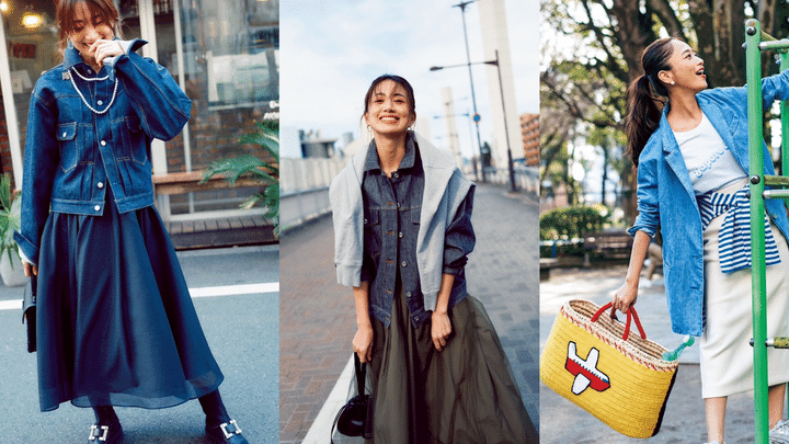 ボトムスを選ばなくて万能すぎる…「デニムジャケット×スカート」着こなし