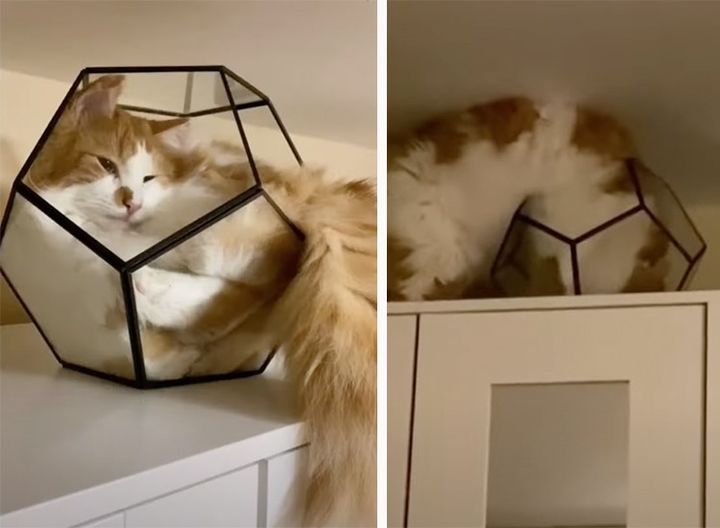 「オシャレな寝床みっけ♪」変な場所で眠りたがる猫。