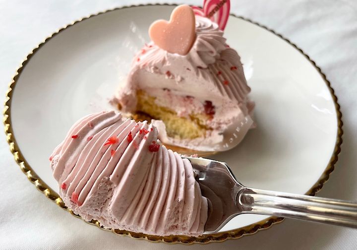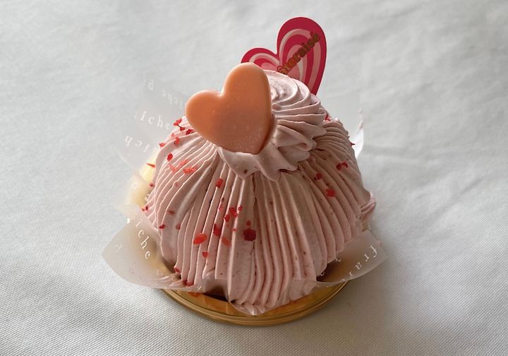 続いて紹介するのは「いちごミルクモンブラン」。ハートとピンクの組み合わせが、かわいらしいですよね。おうちのティータイムが華やかになること間違いなしの新作です。スポンジ、ダイスいちご、練乳ソース、ホイップクリームをたっぷりのいちごクリームで包んでいるのだとか。