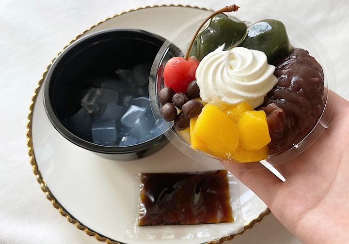 寒天のコリコリ、塩豆と粒あんのつぶつぶ、フルーツの果肉など、異なる食感を一度に味わえて美味。宇治抹茶の抹茶あんの程よい苦味が上品で甘すぎないからか、食べ進めてもくどさを感じません。さらにトッピングの黒蜜を合わせることで、黒蜜の風味が口いっぱいに広がって贅沢な味わい。飽きずに楽しめること間違いなしです。