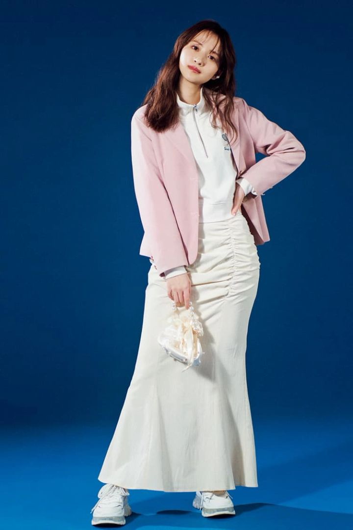 ピンクジャケット 5,819円/Silly by Lit’s ハーフジップスエット 3,299円/WEGO ギャザースカート 2,990円/神戸レタス イヤカフ 1,760円/ヴァンテーヌ バッグ 2,200円/ラティス ダッドスニーカー 6,930円/MORE self LOVE