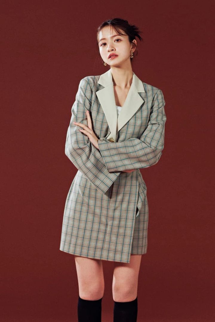TWICE・サナ風のハイソあわせが今っぽ!チェック柄のセットアップがTHEトラッド。ハイソあわせでガーリー要素を取り入れることで韓国ムードを高めてくれる♡