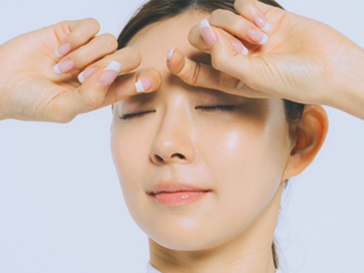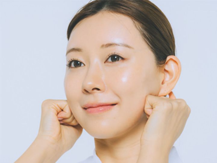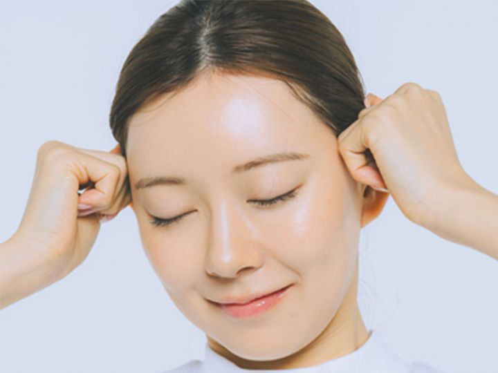 早朝出発でまぶたがパンパンなんてことにならないよう、スキンケアと一緒にマッサージを。10秒ずつやるだけでまぶたや輪郭のむくみがとれて、肌の血色も高まります。