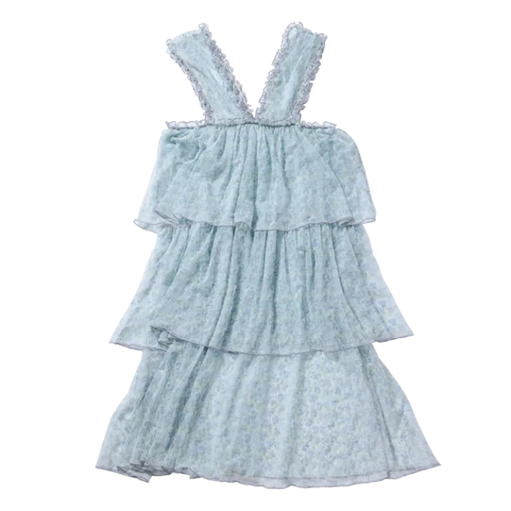 歩くたびに揺れるティアードが華やか。爽やかカラーで清楚な印象に♡